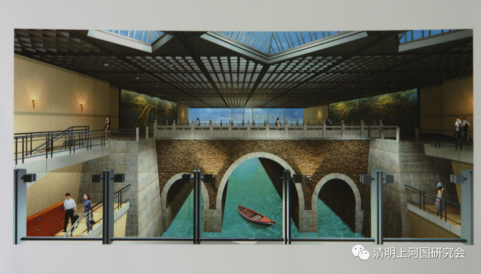 2、如果,进一步的考古发掘,证明前宋、后明两代的古“州桥”有关联传承之迹象,恐怕在河南、全国、乃至世界上,也是有轰动效应的。它必然会成为中国“大运河世遗”项目中,一个难得的亮点,为开封古城增光添彩。 3、不管1983年发掘到的古州桥,和宋代州桥有没有直接关联,有多大关联度。其本身就完全值得建设一座“地下州桥博物馆”。这样的设想可行性吗?笔者认为完全可行,而且早在2002年就已经做过充分准备。 首先,我市已经把州桥遗址西侧的建筑物退让了30米,东侧已经进行了拆迁,腾让部分场地应当不成问题。至于各种工程问题,发达的现代技术手段,没有不能解决的。基本的技术路线就是:以超深的地下连续墙截断地下水,并成为地下室的承重墙体。以类似“高架桥”的桥面结构作为中山路的路面,并兼做地下室顶板。从而建成一个《地下古州桥博物馆》(图6)。 (图6,地下古州桥博物馆示意图) 4、在开发建设《地下古州桥博物馆》过程中,必然同步清理出淤泥中的文物遗存。必然同步清理出历代汴河的河床断面,历代“御街”的道路断面。也就是说,这些考古信息都是国家级文保单位---“北宋东京城遗址”,理所应当希望得到的东西。 5、《地下古州桥博物馆》的开封建设,不仅有用而且有趣。今后,当人们步入《地下古州桥博物馆》中,在灯光下可亲眼目睹古州桥以及发掘到的其他河床内残留文物的风采,也可展现宋御道和汴河河床真实断面。当馆内照明熄灭后,把《地下古州桥博物馆》打造成一个“影视馆”。运用现代科技手段,既可演示宋代汴河中东出西进的漕运盛况,也能展现宋代御道上熙熙攘攘、南来北往的街景风光。置身《地下古州桥博物馆》,那才是逼真地、身临其境地“穿越”到千年大宋东京城。