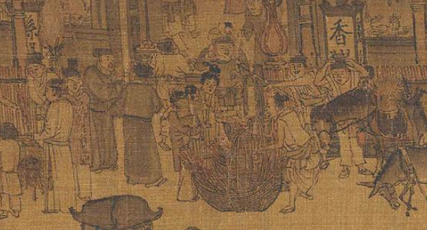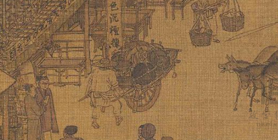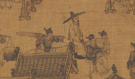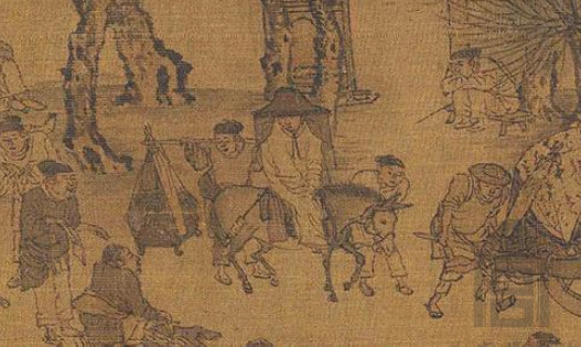 谈《清明上河图》中人物的服饰摘要: 《清明上河图》中人物的服饰,多为宋代的一般服饰,描绘时间以清明时节为主,图中人物的服饰真实地反映出当时社会各阶层人物的真实生活和社会风尚。 北宋东京城是10世纪后期至12世纪初世界上人口最多、经济最繁荣的大都市。当时,京城内外,店堂林立,铺席遍布,商品经济十分发达。各种同行业的商铺还彼此结成“商行”,仅与服饰有关的行业,就有衣行、帽行、鞋行、穿珠行、接绦行、领抹行、钗朵行、纽扣行及修冠子、染梳儿、洗衣服等几十种之多。城市经济的繁荣发展为当时的画家们提供了反映城市生活风俗习惯的丰富题材。其中,张择端的《清明上河图》(以下简称《清图》)就是反映北宋东京生活最杰出的长篇风俗画卷。打开《清图》,首先映入人们眼帘的就是各种各样的人物。他们中间有官宦、绅士、商贩、农民、医生、胥吏、篙师、纤夫、车夫、船工、道士等等。其服饰在形制上大有差别,有长衣、有短褐、有襦袄、有凉衫,有戴幞头的、有顶席帽的……等等,形形色色,不一而足,令人眼花缭乱,充分表现了宋代服饰的丰富多彩。现分门别类表述如下: 一、《清图》中人物头上戴的主要有:幞头、巾、笠、帷帽、席帽。 幞头、巾。隋唐时期的幞头,发展到宋代,已成为男子的主要首服。它已完全脱离巾帕的形式,而变成一种帽子。它有四条带,二带系于脑后并下垂,二带折而反系于上,使其曲折附于头顶髻前,有事可放下而系之于颔下,使劳作行走时不脱;无事则将两带反系于顶上。在颜色上,已不局限于黑色,在一些喜庆宴会等隆重场合,也用些鲜艳的色彩,或在幞头上簪以金银罗绢等制成的花朵。但是,纵观《清图》中男子的首服,虽有幞头的出现,但却很少,这是因为幞头变成帽子后,的确风行一时,渐渐成为文武百官的规定服饰,尽管没有官职的人也可以戴,但一般文人雅士又恢复起戴古代的幅巾,以便与有官职的人有所区别。他们以裹件为雅,出现了东坡巾、程子巾、山谷巾、高士巾、逍遥巾等等,名目繁多,不胜枚举。图中以挑担的小贩,正店里的伙计,奋力划桨的船夫以及手持蒲扇逍遥自在的雅士等,以着幅巾者为多。由此可以看出,着巾已成为当时的一种社会风尚。 笠。用青竹篾编成,夹以笋壳,同后世大致差不多。《清图》中戴笠者多为下层劳动人民,如图中一人推独轮车正在赶路的、两人同一头毛驴推拉独轮车奋力前行的、手持小件卖物缓缓行走的老者等等,他们均是短行装扮,头上戴笠。《清图》中戴笠、披蓑衣的形象也偶有出现,这种装扮会使人们自然而然地想到“清明时节雨纷纷”的季节特点,这与《清图》作者所描绘的季节有关。 帷帽。产生于隋代,兴盛于唐宋。它是在藤席编成的笠帽上再装上一圈丝网的帽子,四周垂下的为网状帽裙,可起障蔽作用。这种帷帽在《清图》中时有出现,如在图的尾部,城门的里面,一人手牵毛驴,毛驴上一妇女正作侧视状,她头上戴的就是这种帷帽。此帽虽说男女皆可用,但多用于出门行路的女子。 席帽。也叫大裁帽,同帷帽相似。帽子前面加一幅黑纱围住或只围一半,为一般农夫或没有功名的男子所戴。这一形制的帽,在《清图》中出现的较多。 二、《清图》中人物的上衣主要有:衫、襦、袄、!衫、背子衫。大致分为两种。一种是凉衫或叫白衫,颜色以素淡为主,比较宽大;另一种叫紫衫,多用于戎事之服,后来士大夫也服用。《清图》描绘的虽然是暮春之际清明时节的景色,但对于广大劳动者来说,此时正值一年忙碌的开头,繁重的体力活使之襦袄之类的衣服已不需穿了。因此,那些背负口袋前行的,打着毛驴赶车的,担挑出城门的,船上奋力划桨的,各种人物都是穿的这种凉衫。此外,凉衫由于颜色浅白,也常在吊慰凶丧时穿用。想必图中那位头戴帷帽,乘驴前往郊外的女子,她所披的凉衫,就是专为清明时节扫墓和祭奠亲人而服用的。 襦、袄。襦与袄是相近似的衣着,形式比较短,只是袄比襦稍长。襦、袄大多用于下层人士,且多作常服穿着。一些上层人士虽也穿着,但大多作为内衣,穿着时外面再加上其他服装。《清图》由于季节的关系,穿这种服装的人已不是太多,只是偶有一、二人,以应付春寒料峭的天气。 袍。长至足上,有表有里,里面是棉絮。因为它长,所以有时也称长襦。袍有宽袖广身和窄袖紧身两种。按其布料还可分为锦袍和布袍。锦袍一般为有官品职位者所穿,而庶人多穿布袍。《清图》由于描绘季节所限,着袍的人廖廖无几,而且多是老者,应为庶人所着的布袍。 襕衫。《宋史·舆服志》中记载“襕衫以白细布为之,圆领大袖,下施横襕为裳,腰间有襄积,进士、国子、生、州县生服之。”由此可知,襕衫外形近似袍,只是不加棉絮而已,因此也可叫作袍衫。由于这种服饰适用于春秋季穿着,所以这种襕衫在《清图》中出现的较多。 背子。背子又名绰子。在宋代,男子和女子都可穿它,所以,这一服饰在《清图》中出现的最多。各式各样的背子如长背子、短背子、宽袖背子、窄袖背子等等,在《清图》中都有出现。但是,宋代男子背子和女子背子在其使用、形制和时间上都有很大的区别,因此需对《清图》中男女所着背子分而述之。 男子背子。在宋代,男子穿背子虽已比较普遍,但不能作为正式服饰应用,一是不作礼服,二是多在居家休闲时穿。男子的背子引长